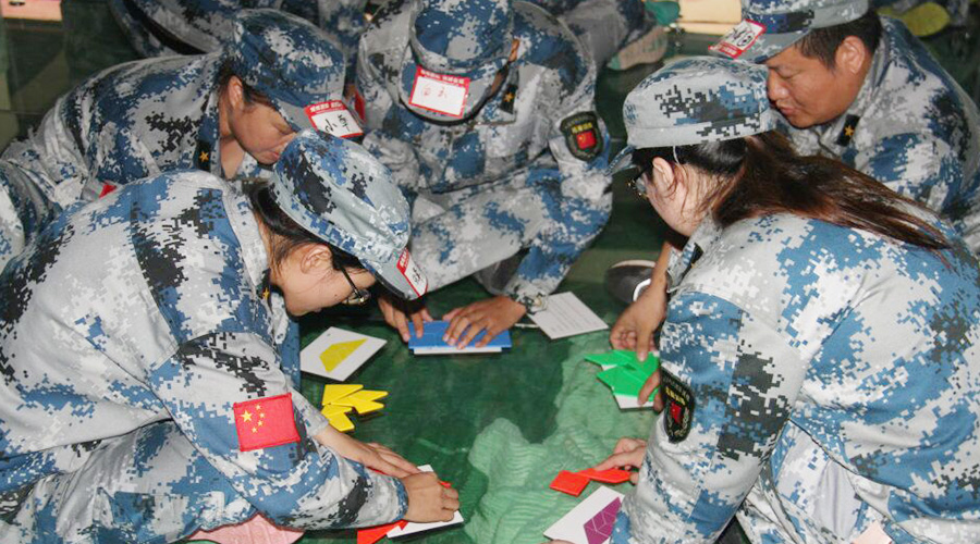 将一个团队分成7个小组,所有人在身体不得离开椅子的情况下完成各自任务书的任务,会有相应积分。只有全队在规定的时间内总分达到1000分的目标,才算项目挑战成功。