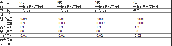 第一级为Q级,即为主管路过滤器,可过滤器3微米凝聚过滤器,用于车间下列设备的送气管线.如工具.马达.气缸;
